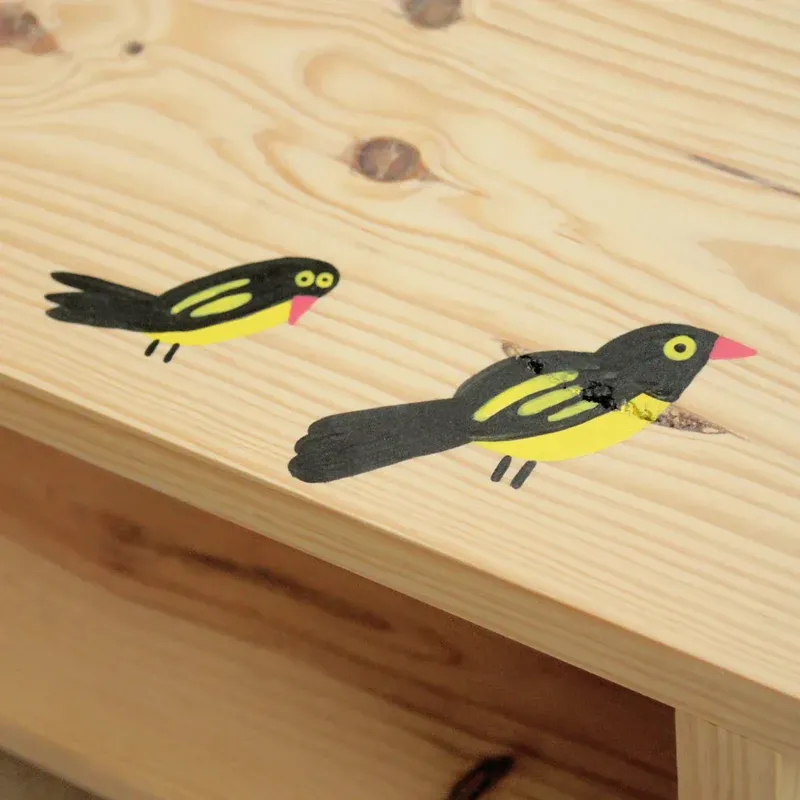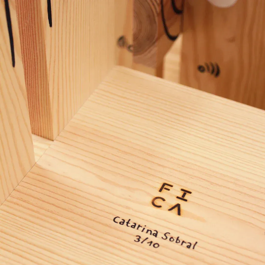 Pica-bois • Amenomania. Collection of benches designed and handcrafted by FICA and individually illustrated by Catarina Sobral. Material: Portuguese pine wood, screws, glue, and acrylic paints. Dimensions: H35cm x L45cm x W20cm _